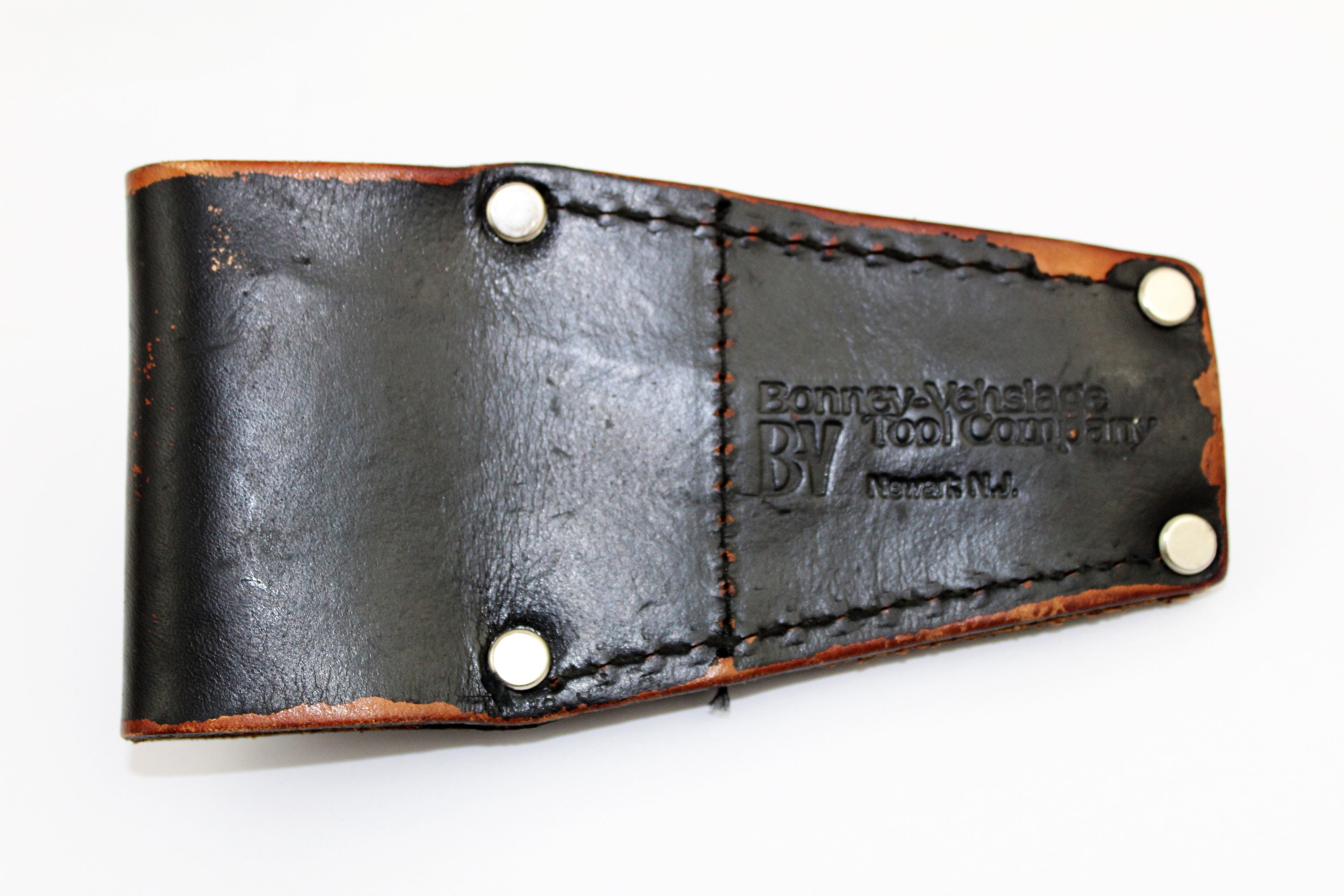 Wonderful vintage ticket punch made by Bonney & Vehslage Tool Company Newark N.J. The chrome plated steel ticket punch is in its original leather holster. The holster is designed to loop onto your belt. The punch is in wonderful condition with only light scuffs and operates very smoothly.