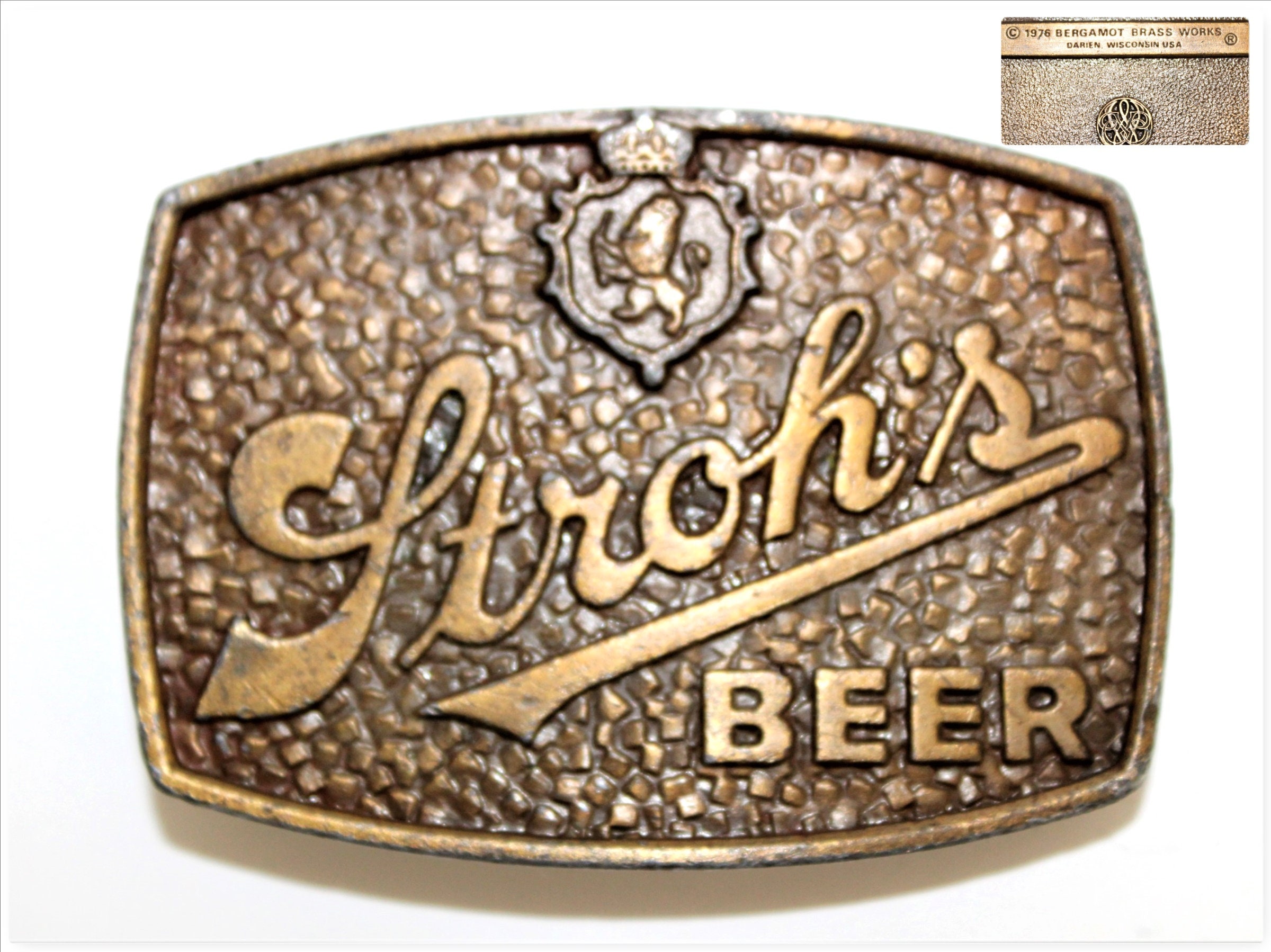 Wonderful Stroh’s Beer Belt Buckle made by the Siskiyou Pewter Belt Buckle and Design by Bergamot Brass Works.
