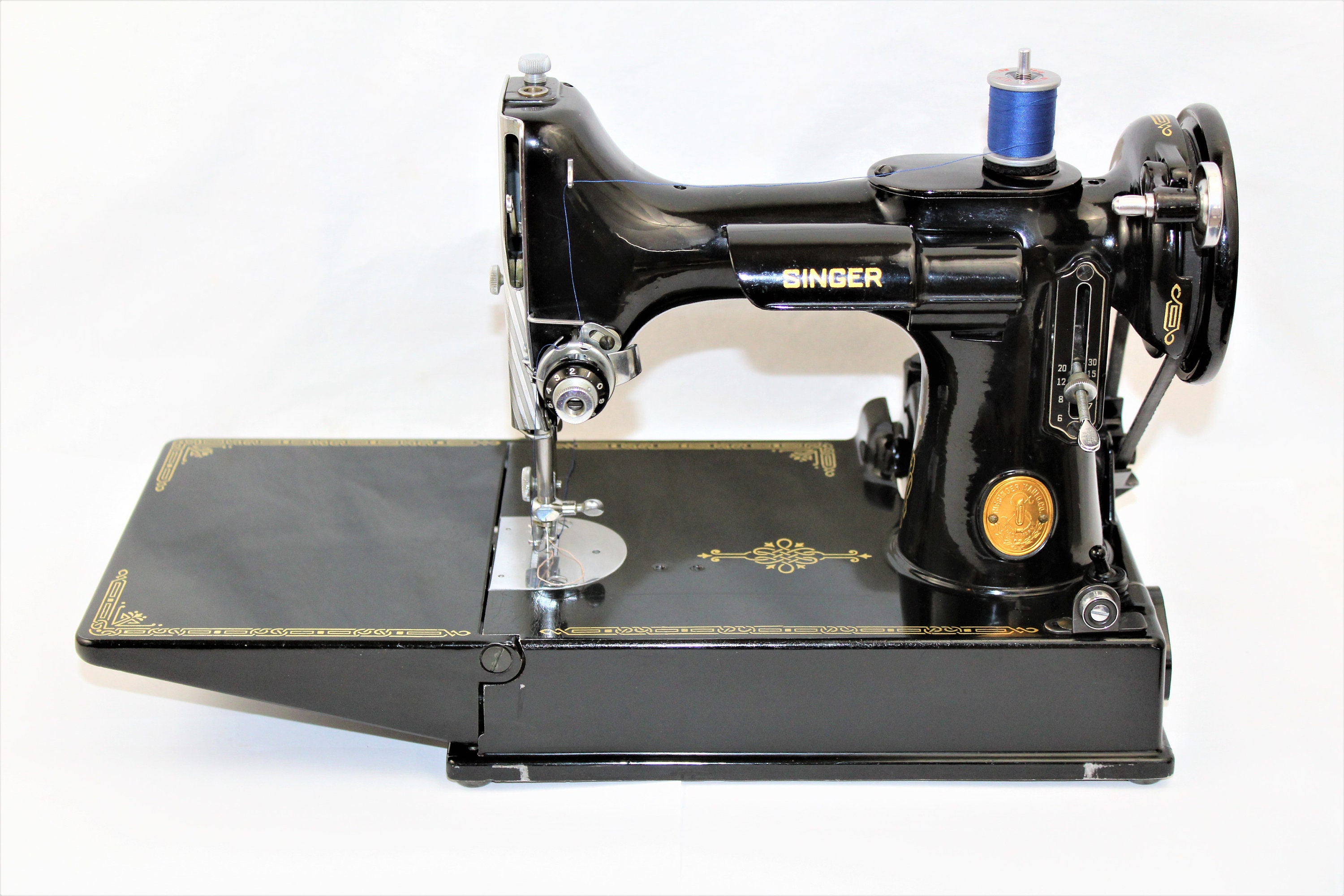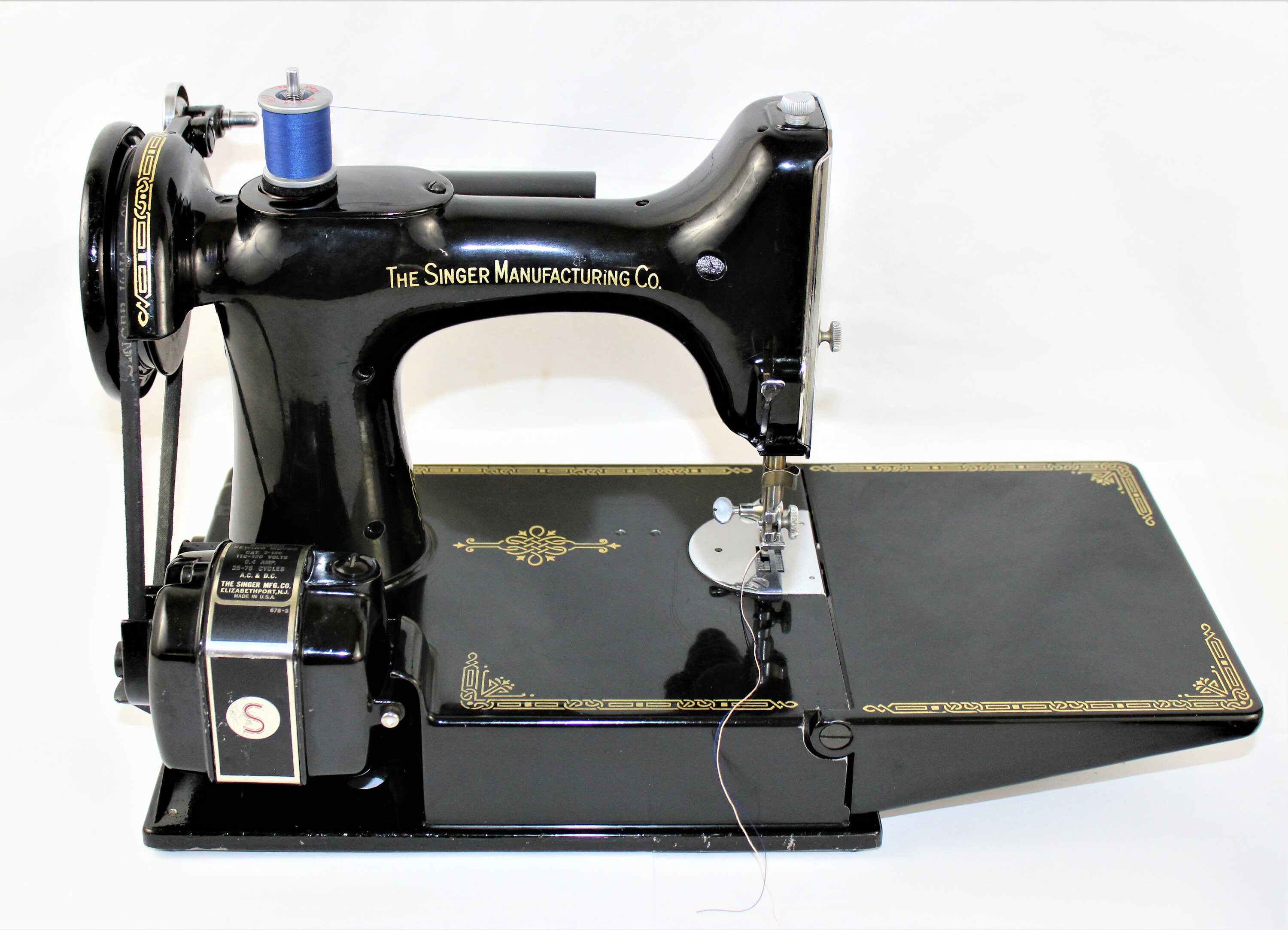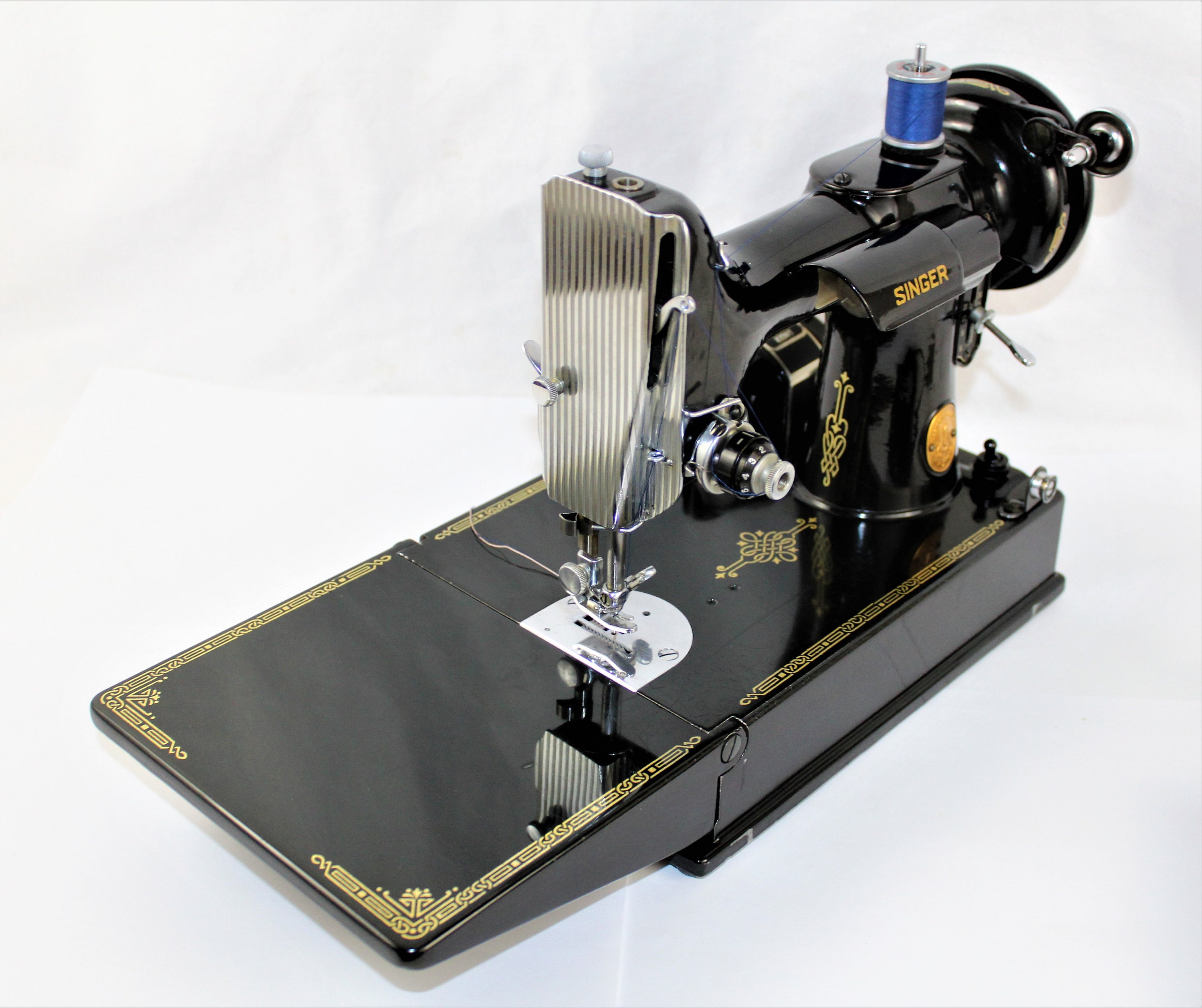 The I. M. Singer and Company began making sewing machines in 1851. In 1933, the company debuted the ‘featherweight’ machine at the Chicago World’s Fair. During WWII, the companies factories were retooled to support war related machinery needs. In 1945, when they changed back to manufacturing sewing machines, the featherweight was their most popular and reliable brand. The Singer featherweight has long been a cherished machine for quilting and sewing due to its precise sewing capability and easy portability.
