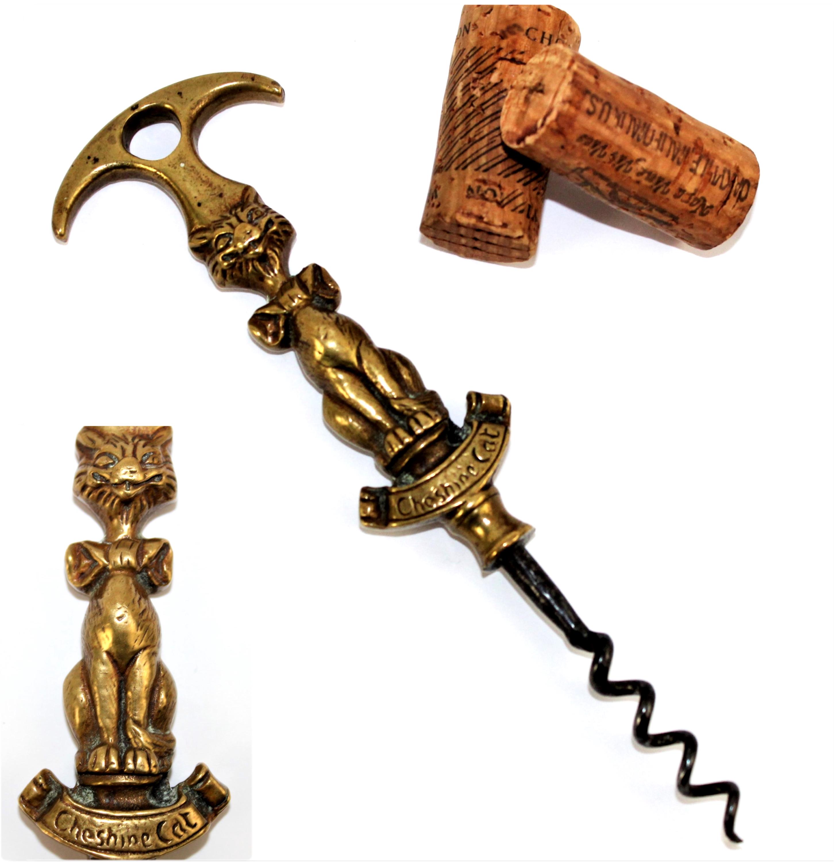 Antique Brass Figural Corkscrew, Cheshire Cat Corkscrew.